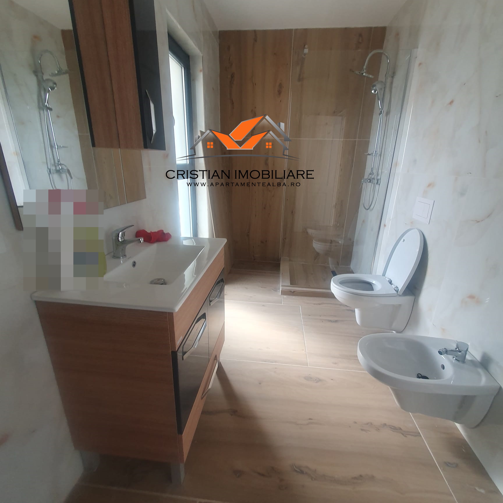 Este dotată cu încălzire în pardoseală , băile au geam de aerisire .